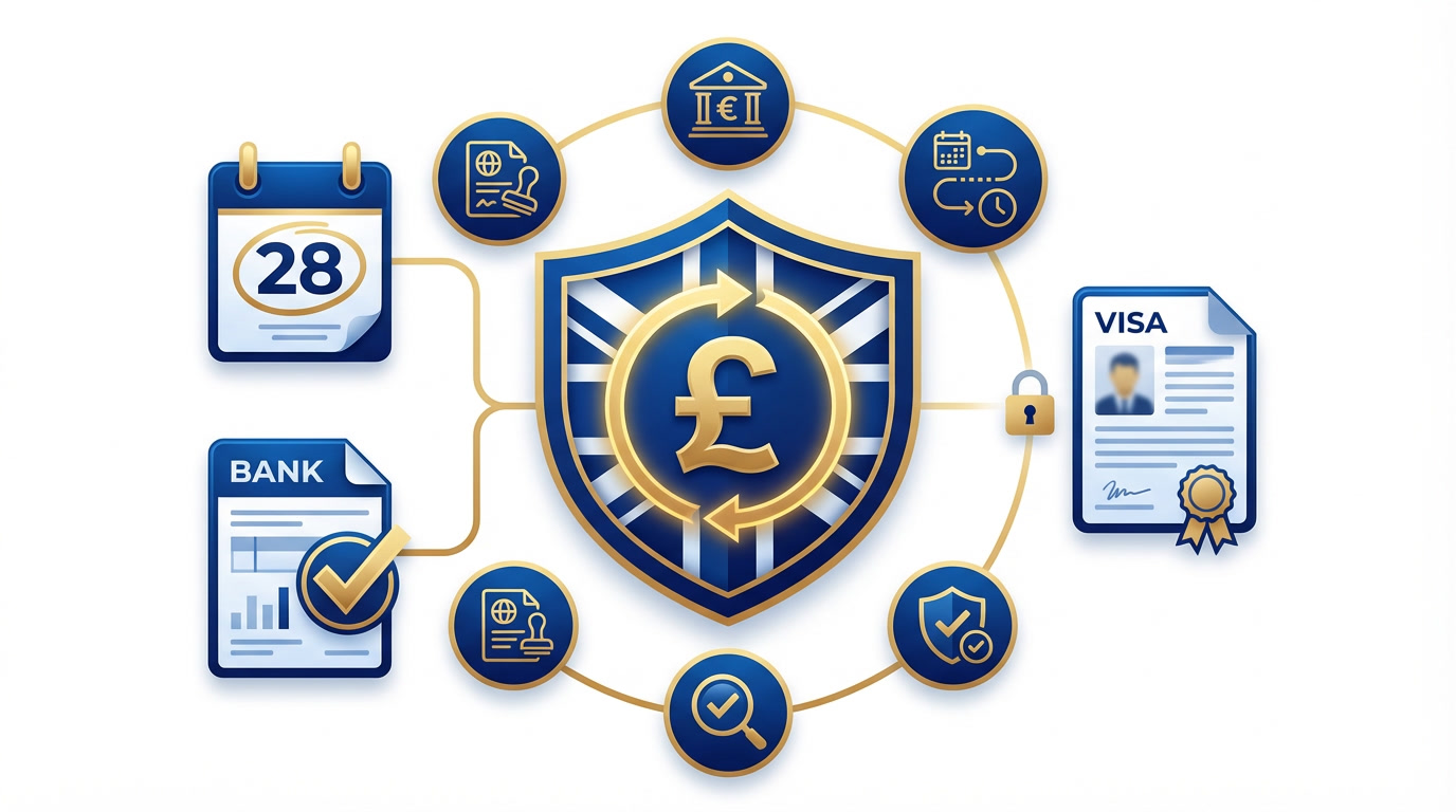 The 28-day rule requires that your funds remain in your account for 28 consecutive days without dropping below the required amount. The bank statement showing this 28-day period must be dated no more than 31 days before your visa application. This rule prevents last-minute borrowing.